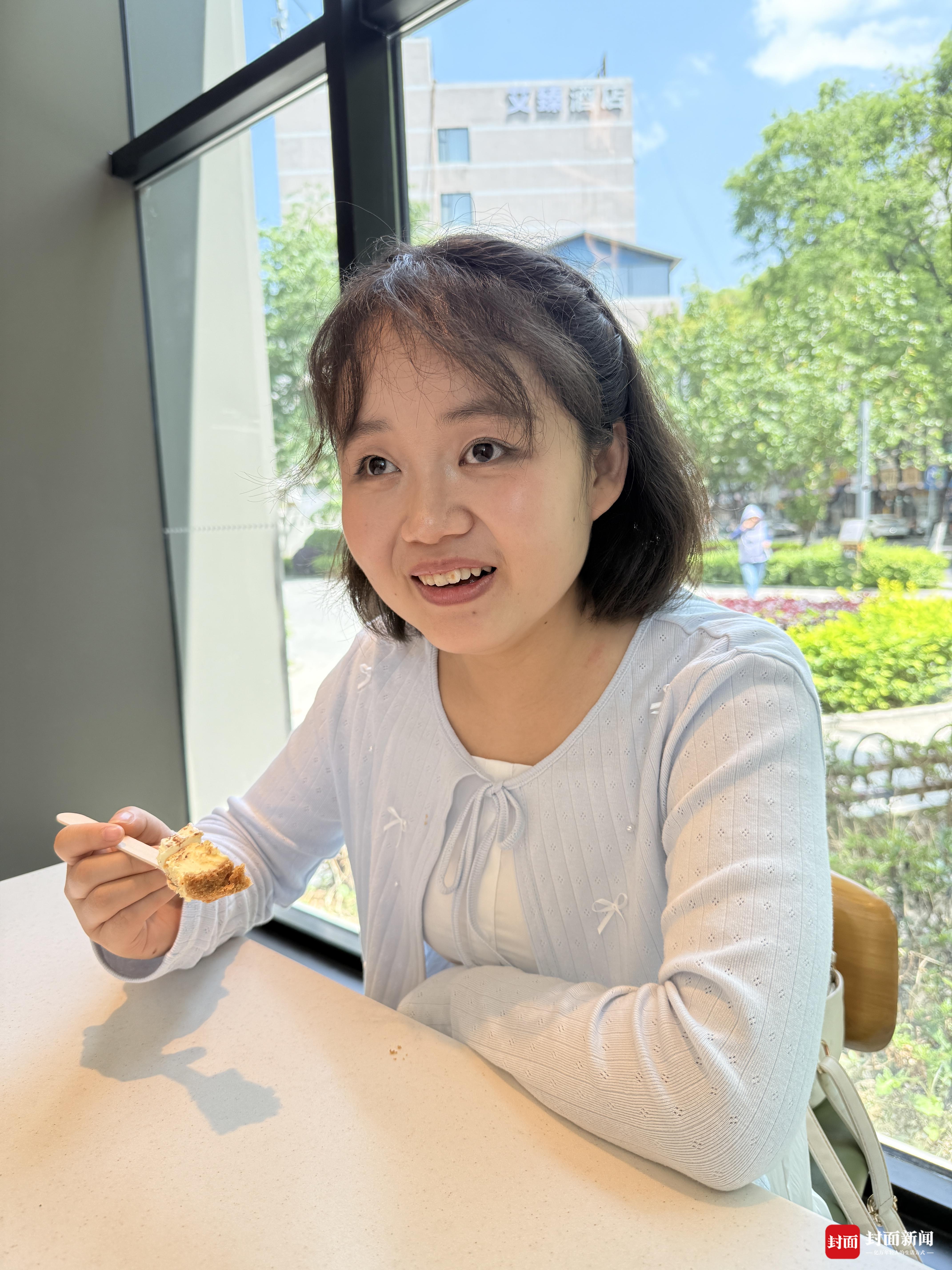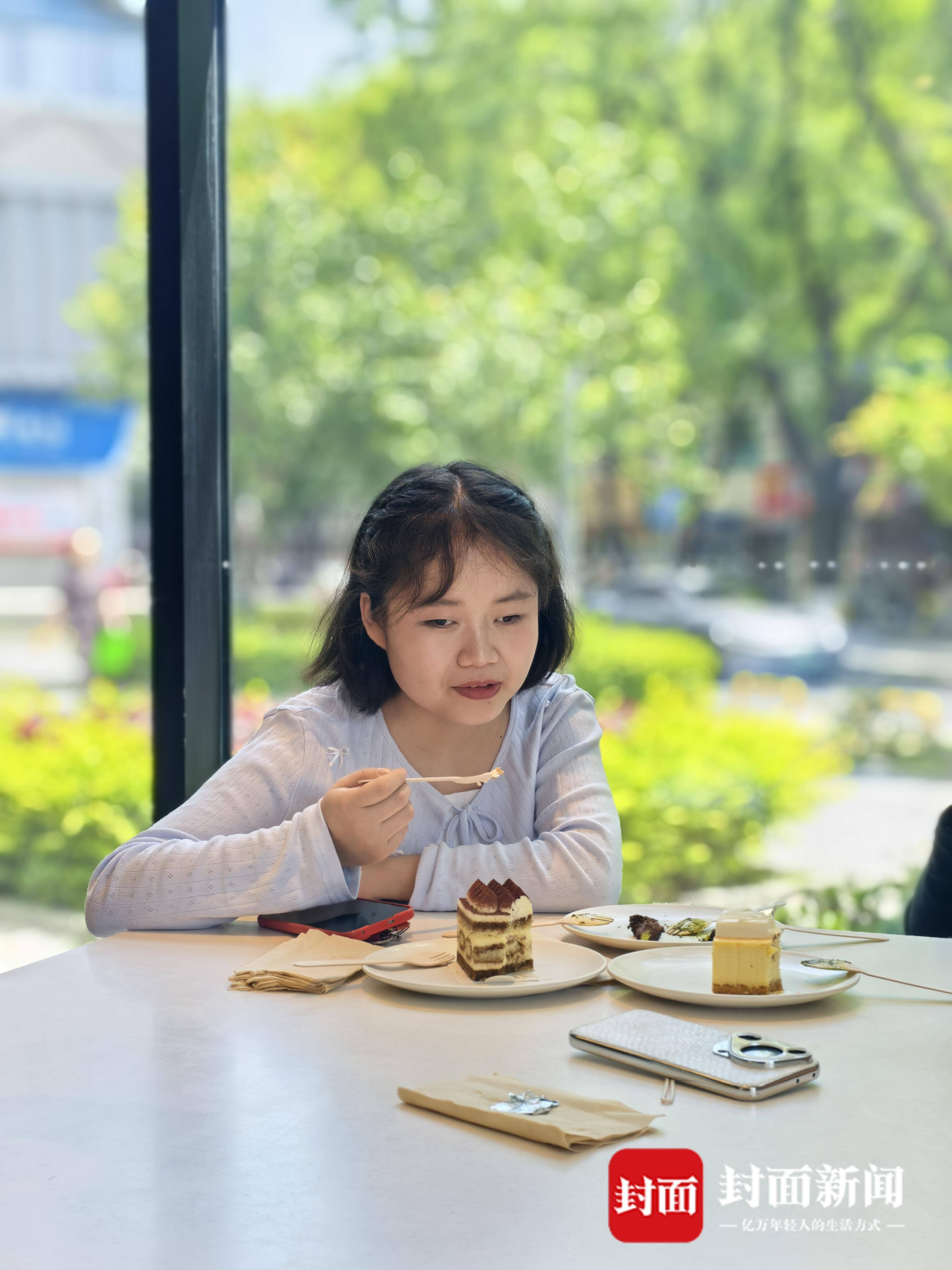坐在咖啡馆,郭梦漪品尝着自己最喜欢的蛋糕。封面新闻记者王祥龙摄